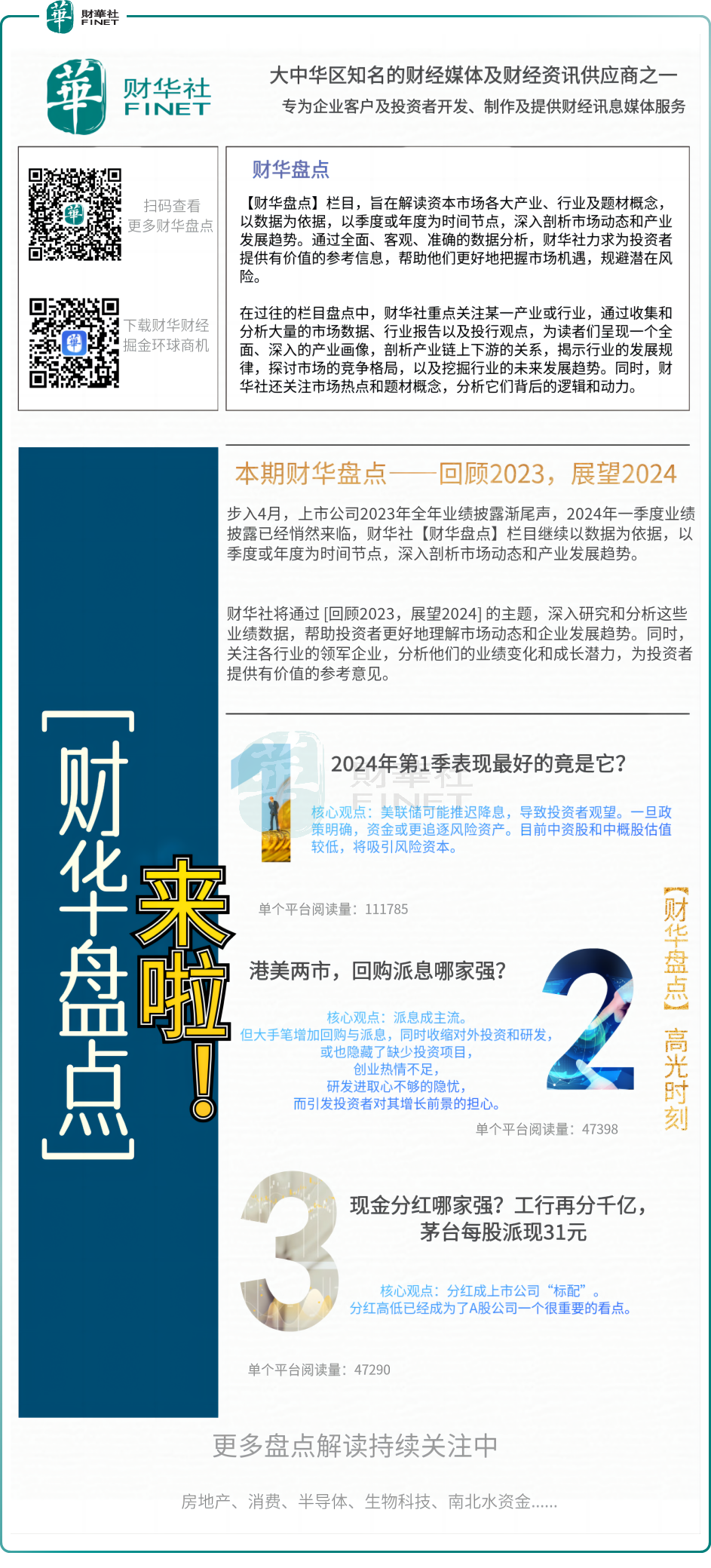步入4月,上市公司2023年全年业绩披露渐近尾声,2024年一季度业绩披露已经悄然来临,财华社【财华盘点】栏目继续以数据为依据,以季度或年度为时间节点,深入剖析市场动态和产业发展趋势。