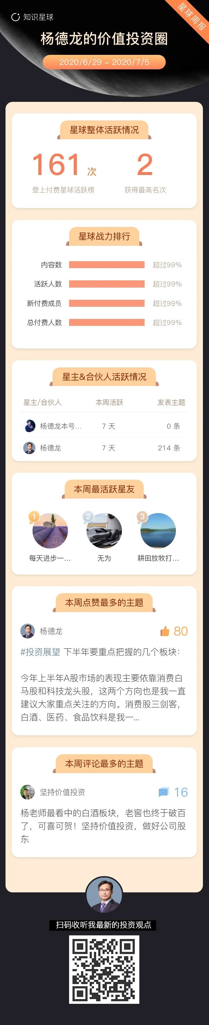 在星球里,每天会更新最新投资观点,每年解答10000+圈内朋友的提出的问题,每年还赠出100+本亲笔签名书,各种研报资料、线上免费课程等等福利,可以添加我的个人微信号yangdelongxq001交流。