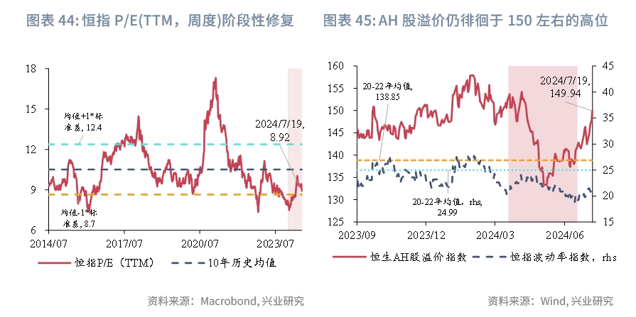 下半年,隨著市場逐步形成美聯儲9月降息的預期,非美貨幣壓力預計有所緩和,利好國際資金回流港股在内的新興市場;内地方面,最新通脹數據顯示6月内需增長修復仍偏弱,但出口數據反映外需反彈較為強勁。7月以來,内地暫無超預期利好措施出台、疊加美國大選相關突發消息擾動,大型科技股引領美股下跌,恒指再度弱勢波動、跌至17500點以下,後續仍需關注7月底中央政治局會議是否有擴内需及房地產相關政策出台。