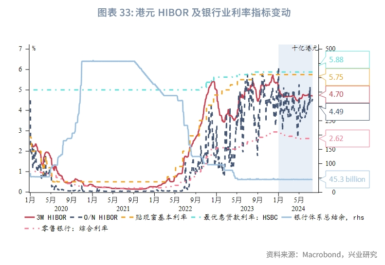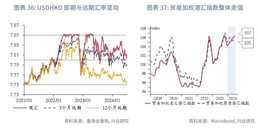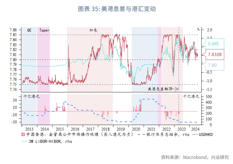 貨幣政策方面,隨著市場對美聯儲9月降息預期逐步升溫,聯系匯率制度下,年底前香港金管局或跟隨美聯儲調降1-2次貼現窗基本利率;由於港元利率相對滞後於美元利率波動,美港息差有望於第四季度階段性由正轉負,帶動港元匯率進一步穩定在7.75-7.80區間。