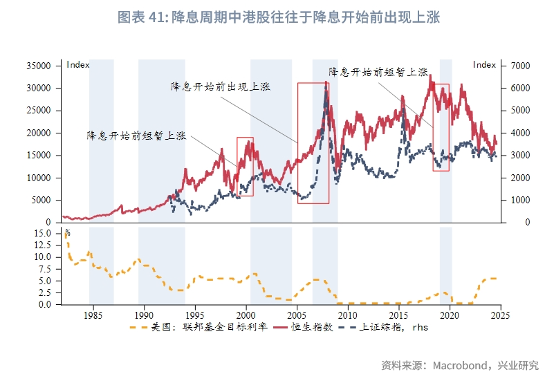 回顧歷次美聯儲降息周期可以發現,美聯儲降息開啓初期港股通常反彈、但隨著時間推移上漲勢頭逐漸消退。2000年之後的四輪完整降息周期中,除2020年這輪以外,恒指均累計錄得下跌,體現出基本面的修復仍然是港股2024年走勢的底層邏輯。整體來看,降息周期有望於下半年開啓、並為港股帶來流動性提振,但港股在上半年經歷了由資金面和政策預期驅動的行情後,上漲空間的進一步打開仍取決於内地及本地基本面的修復。結構方面,在内地財政「強刺激」可能性較小的情況下,高股息板塊或仍將受到關注,科技、公用事業等板塊或受利好政策提振。另外,仍需關注2024年美國大選對中美關系及港股風險偏好的影響。