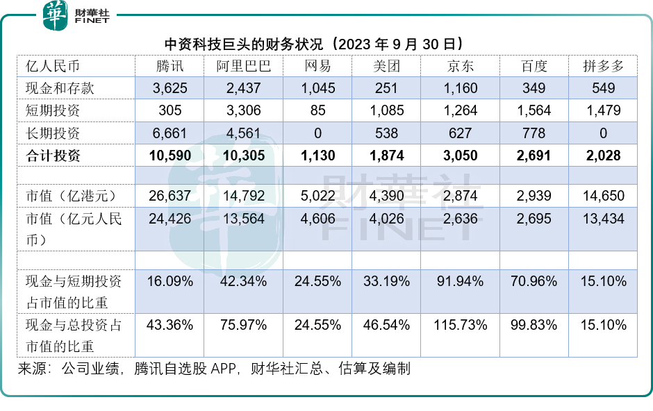 於2023年9月30日,騰訊持有現金及等價物3,624.59億元人民幣,短期投資304.76億元人民幣,長期投資高達6,660.92億元人民幣,三項合共達到1.06萬億元人民幣,相當於其當前港股市值2.66萬億港元的43.36%,也給足了安全墊。