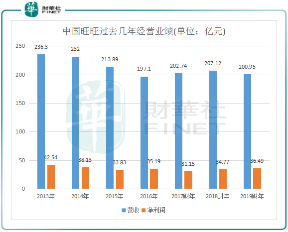 因疫情对第四季度(2020年1-3月)销售的影响,中国旺旺在2019财年实现收益200.95亿元(人民币,下同),同比下降3%,这也是中国旺旺经过2017年及2018年连续两年增后再度出现营收下滑。报告期内,因产品组合优化及部分原材料成本下降,中国旺旺净利润为36.49亿元,同比增长5%。