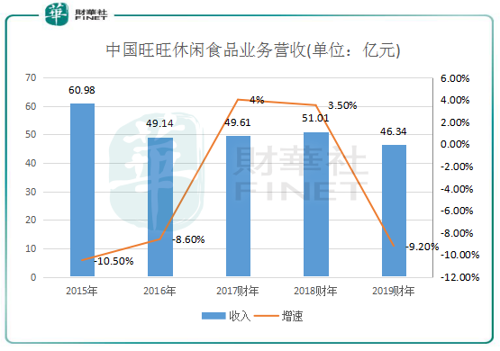 不过,2015年来市场风格的变化使中国旺旺的乳品及饮料业务增速有所放缓甚至下滑,受压尤为明显。2015年-2019财年,中国旺旺乳品及饮料业务收入增速分别为-13.6%、-13.4%、7.4%、1.6%及0.9%。