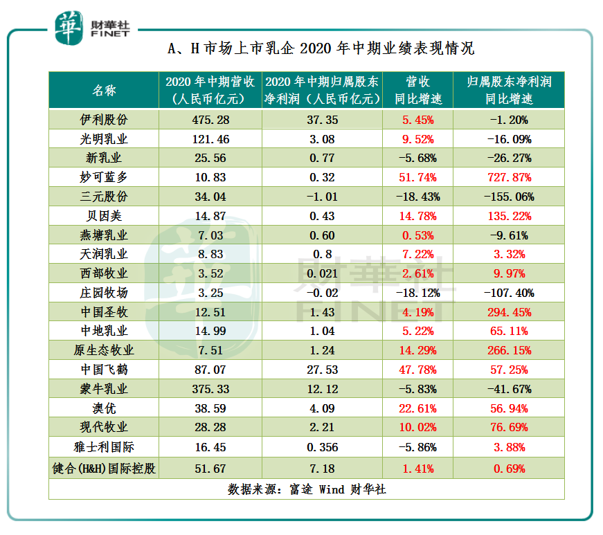 在此背景下,2020年中期我国乳企行业整体呈现出“一二线液体奶乳企业绩下行,奶粉及奶源企业逆势而上”的业态。
