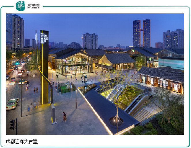 在成都的远洋太古里是远洋的招牌产品,是远洋集团与太古地产二次携手,于2012年以20亿元摘得位于四川成都锦江区大慈寺三个宗地的土地开发建设权,历时5年,打造成融合历史、文化艺术和街巷购物交融的开放式、低密度街区形态购物中心,现已成为全国知名商业样本——成都远洋太古里。该项目在管面积8.3万平方米,出租率97%,吸引了HERMES、GUGGI、OMEGA等众多知名品牌。