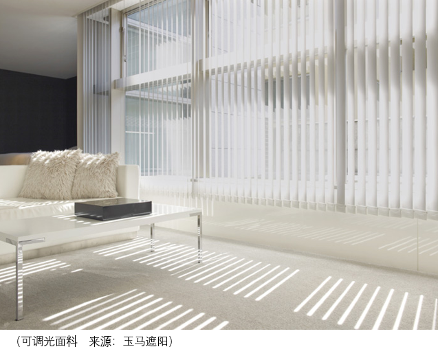可调光面料因其结构新颖、调节光线便捷、美观大方、具有一定的装饰性等特点,自进入市场后,快速被家居市场所接受,主要适用于别墅,家庭住宅的书房、卫生间、飘窗等以及高档酒店大堂、特色餐厅、咖啡厅、办公楼等建筑的内遮阳;