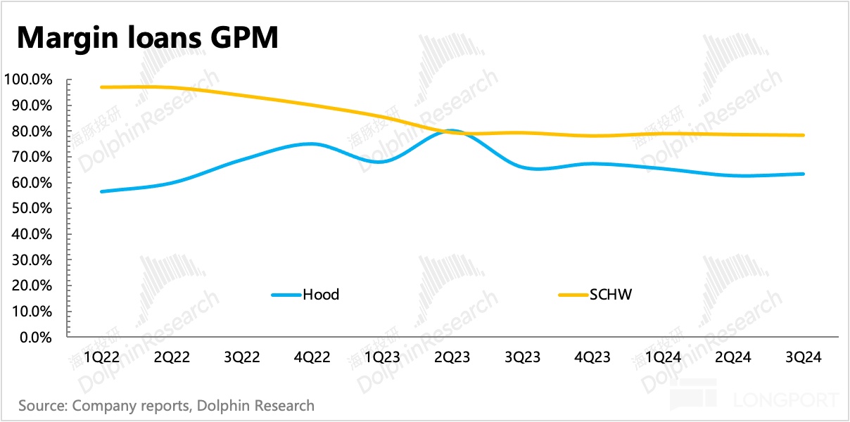 作为比较普遍且通用的交易衍生业务,嘉信和 Robinhood 在融资业务的变现效率、实际收益水平上,却有着一些差异。