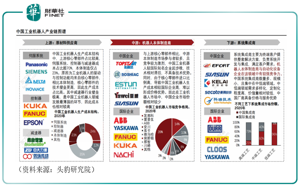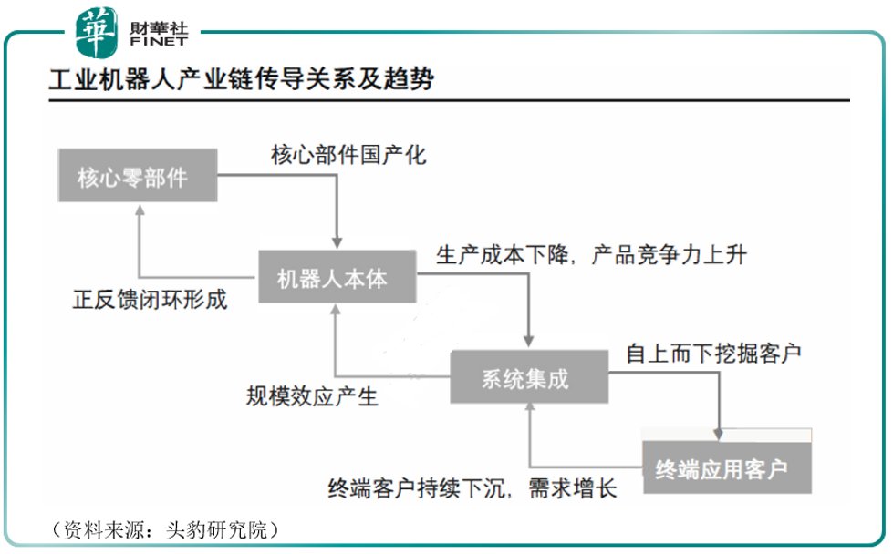 工业机器人产业链联系较为紧密且传导作用明显,若国内实现上游零部件国产化后,中游机器人本体的成本将大幅下降,产品竞争力可有效提升。