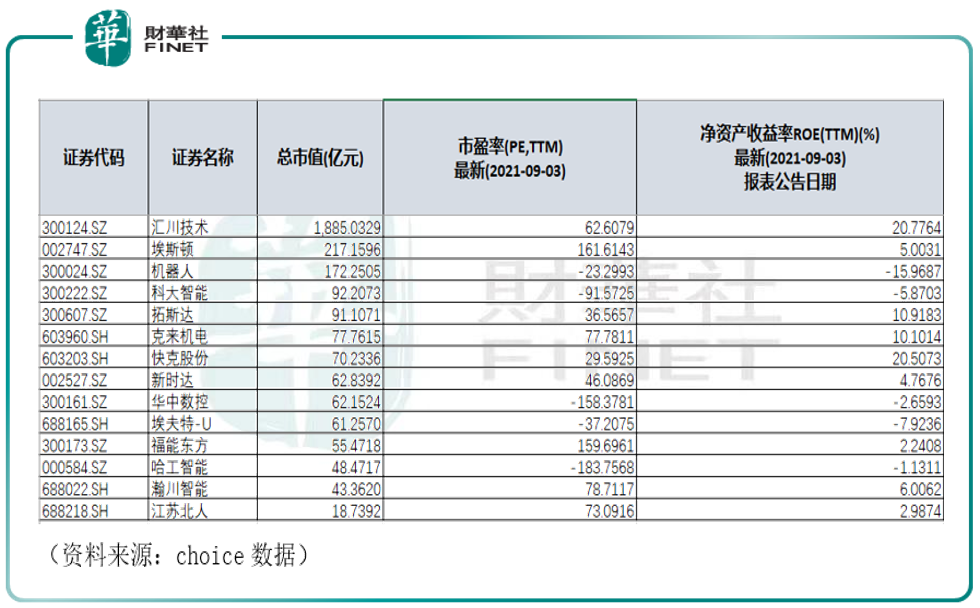 若查询工业机器人概念,按东财行业分类,工业机器人有14只个股,按总市值降序排列,相关情况如下: