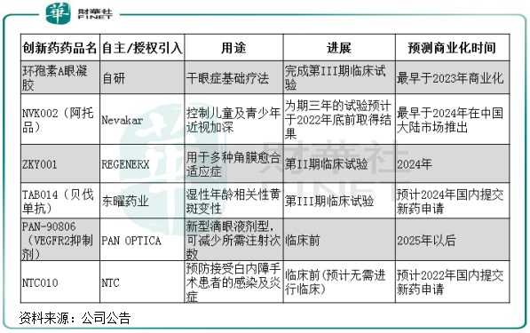 根据财华社统计,兆科眼科在今年或有创新药首次进入商业化。预计在今年,NTC010就可在国内提交新药申请,这也是公司管线中离商业化最近的一款创新药产品。