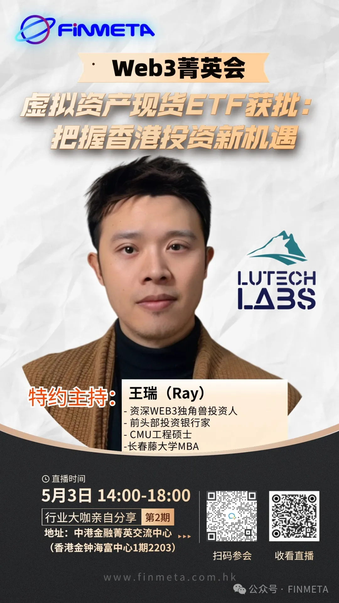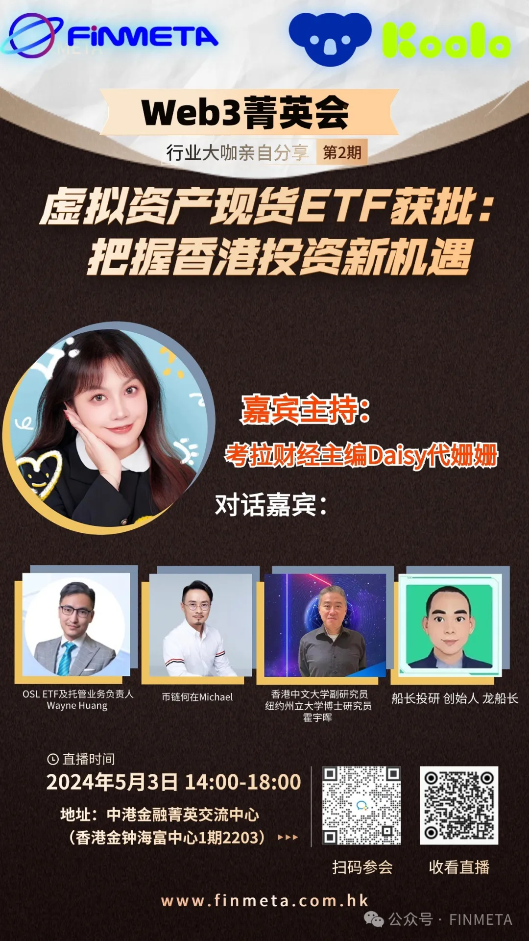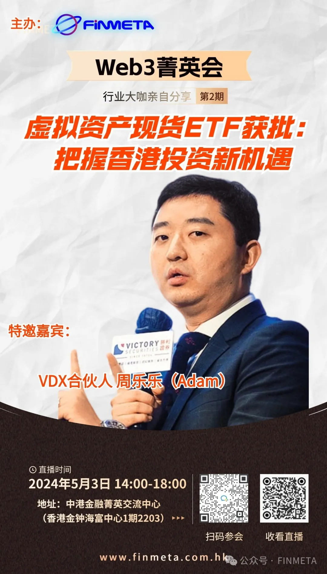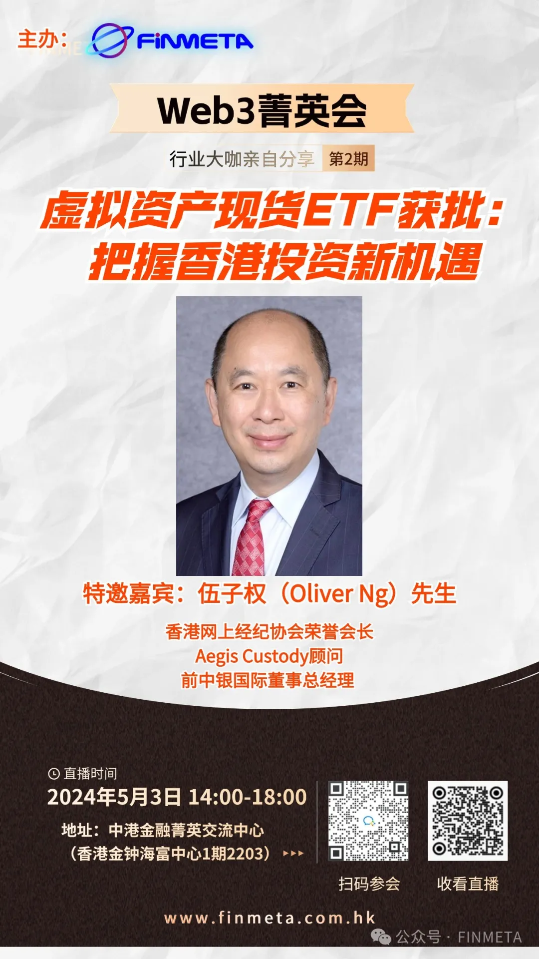 2024年5月3日,以“虚拟资产现货ETF获批:把握香港投资新机遇”为主题的Web3菁英会(第二期)在中港金融菁英交流中心(香港金钟海富中心1期2203)隆重举行。此次活动由FINMETA主办,Anicyber、Techub News联合举办。
