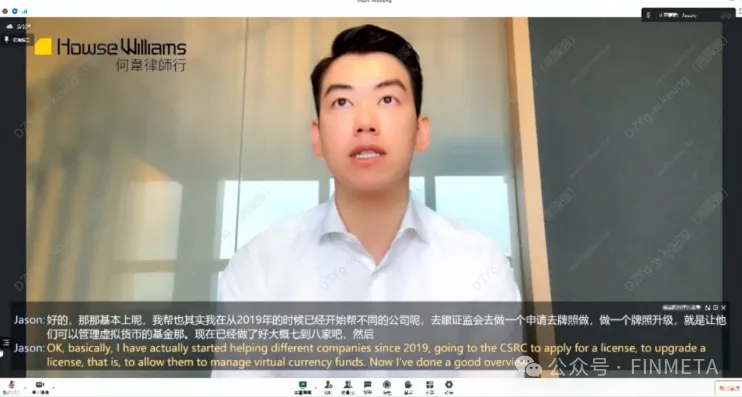 何韦律师行(Howse Williams)合伙人陈政匡(Jason Chan)先生通过视频分享的方式,介绍了香港虚拟资产现货ETF申请的法律流程及合规事项。