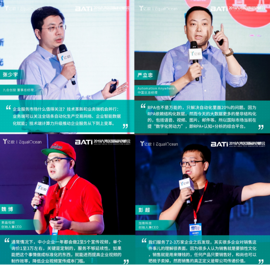 在18日下午舉行的智能企業服務論壇上,九合創投董事總經理張少宇,Automation Anywhere中國區總經理嚴立忠,來畫視頻創始人兼CEO魏博、加推科技創始人兼CEO彭超等人做了深入分享。