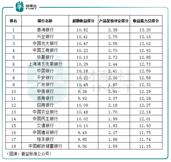 在超額收益得分方面,渤海銀行位居所有全國性商業銀行首位。而在銀行綜合理財能力子榜單中,渤海銀行則躋身全國性商業銀行第九位。