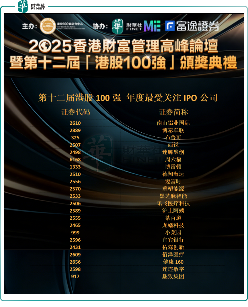 以下是第十二屆港股100強「年度最受關注IPO公司」榜單獲獎企業名單(50名):