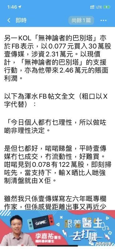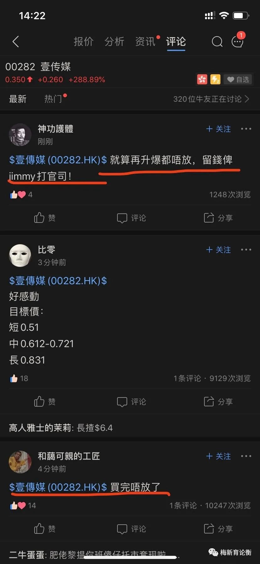 看到有那麽多曱甴大喊大叫支持壹傳媒、要買入壹傳媒股票然後不脫手、……,外加亂港黃營大V叫嚷,我感到更像是幕後黎智英之類老板拉升股價出貨,以求跑路,這番操作收割的都是曱甴。如果是這樣,那是最好,大叛賊收割小喽啰,執法機關罰沒叛賊不義之財,曱甴求仁得仁,港區國安法立威,特區政府不加稅而增加財政收入,豈不多贏?